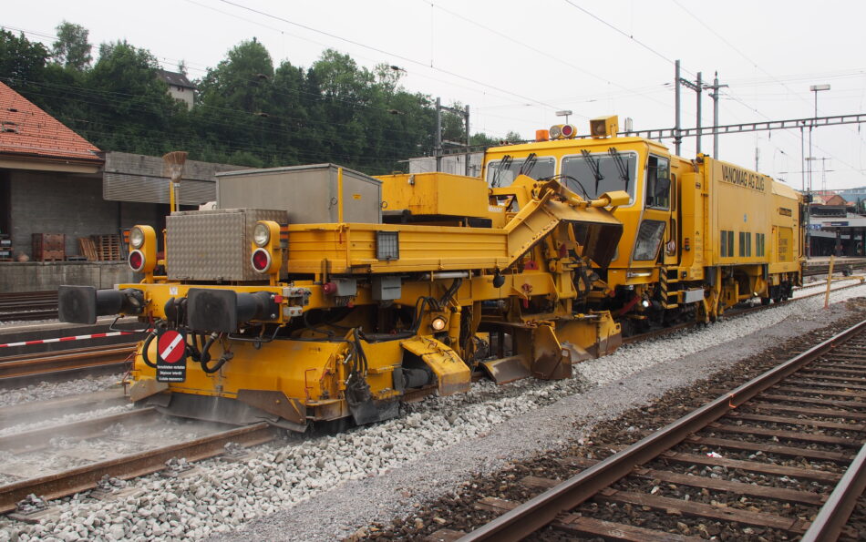 Mit modernster Technologie und einer hohen Arbeitsgeschwindigkeit bewältigen unsere Stopfmaschinen jede Herausforderung. Sie sorgen für eine gleichmässige Gleislage und verlängern die Lebensdauer der Schienen.